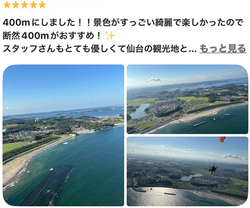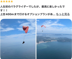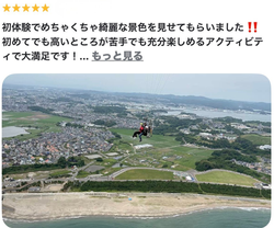 パラグライダー体験の口コミ数は日本一。また、大手予約サイトにて